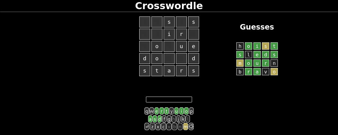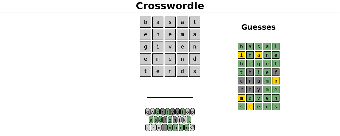 Crosswordle is a 5×5 wordle clone (they were popular at the time